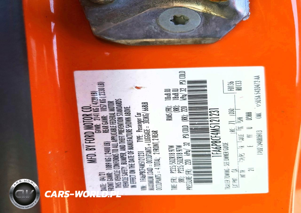 Copart Nr: C-50334996 VIN: 1FA6P8CF4M5121231 Port: Los Angeles, CA