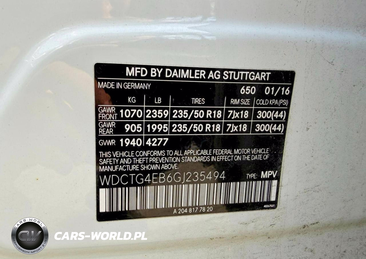 Copart Nr: C-50356296 VIN: WDCTG4EB6GJ235494 Port: Elizabeth, NJ