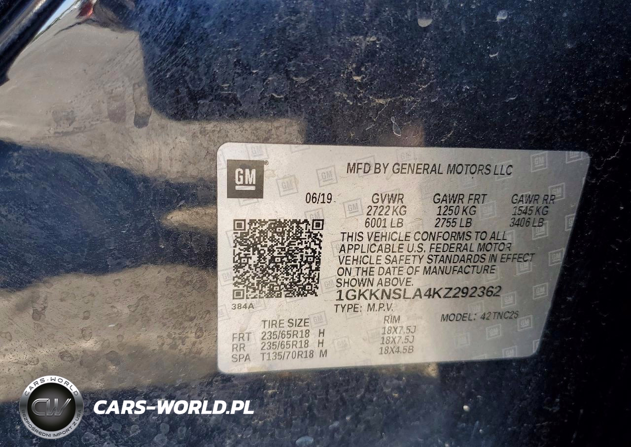Copart Nr: C-50375716 VIN: 1GKKNSLA4KZ292362 Port: Savannah, GA