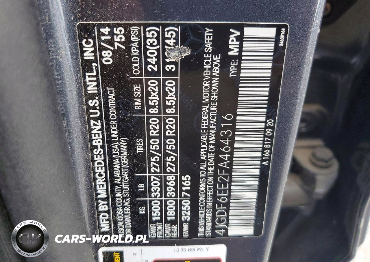 Copart Nr: C-50463346 VIN: 4JGDF6EE2FA464316 Port: Elizabeth, NJ