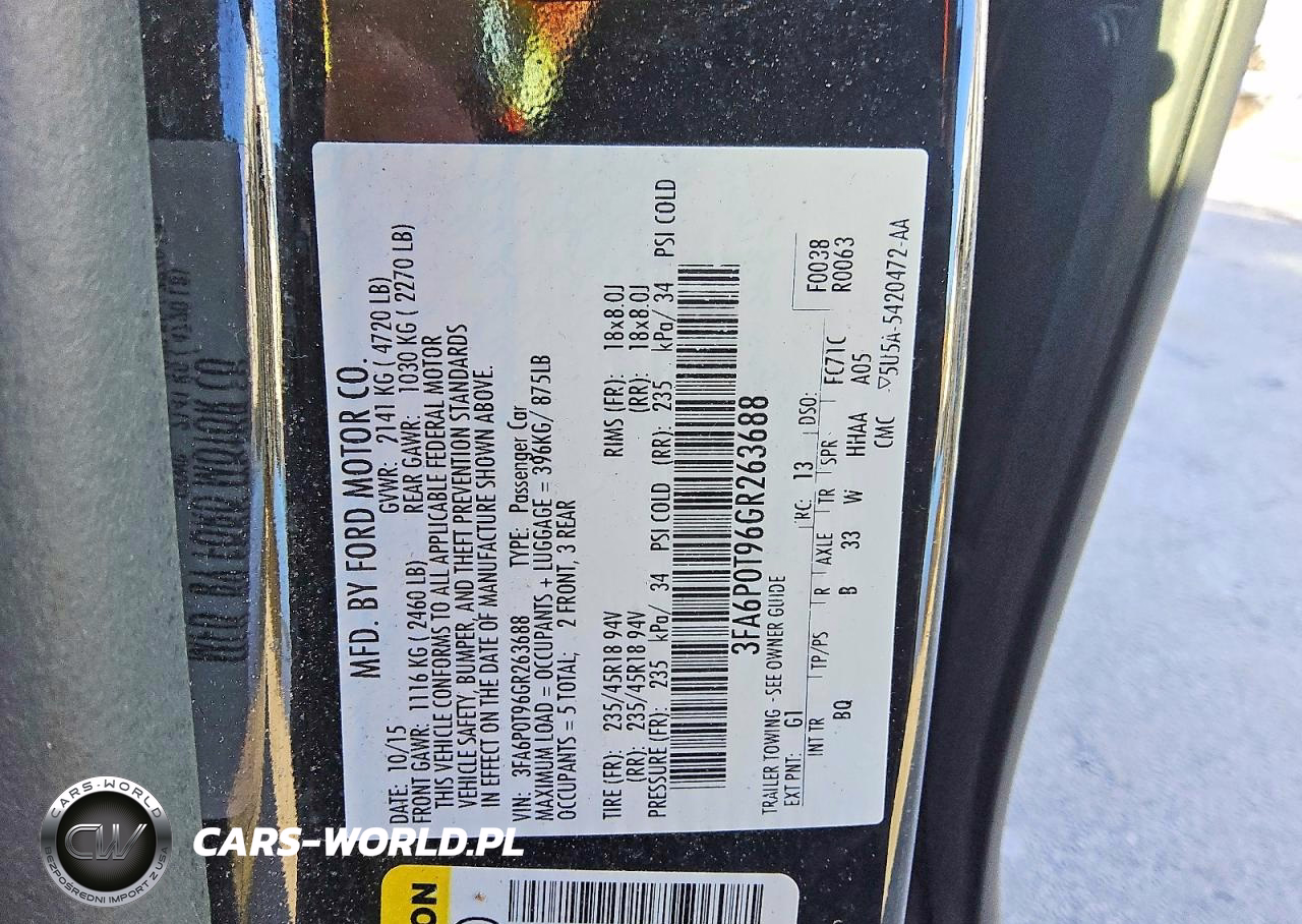 Copart Nr: C-50521706 VIN: 3FA6P0T96GR263688 Port: Elizabeth, NJ