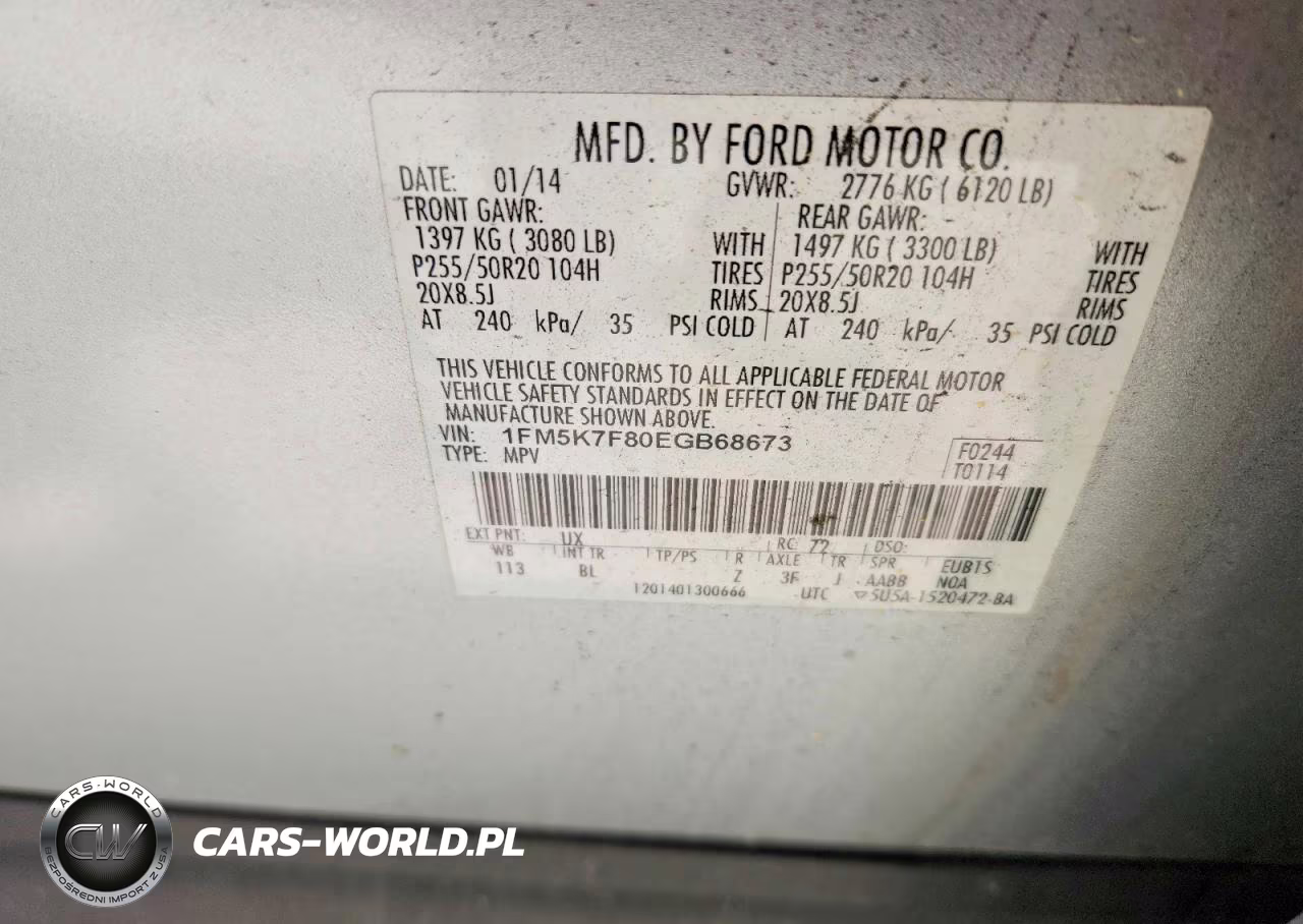 Copart Nr: C-50554376 VIN: 1FM5K7F80EGB68673 Port: Savannah, GA