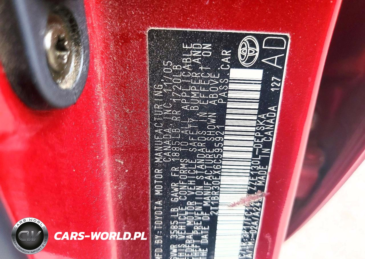 Copart Nr: C-50607606 VIN: 2T1BR30EX6C595921 Port: Elizabeth, NJ