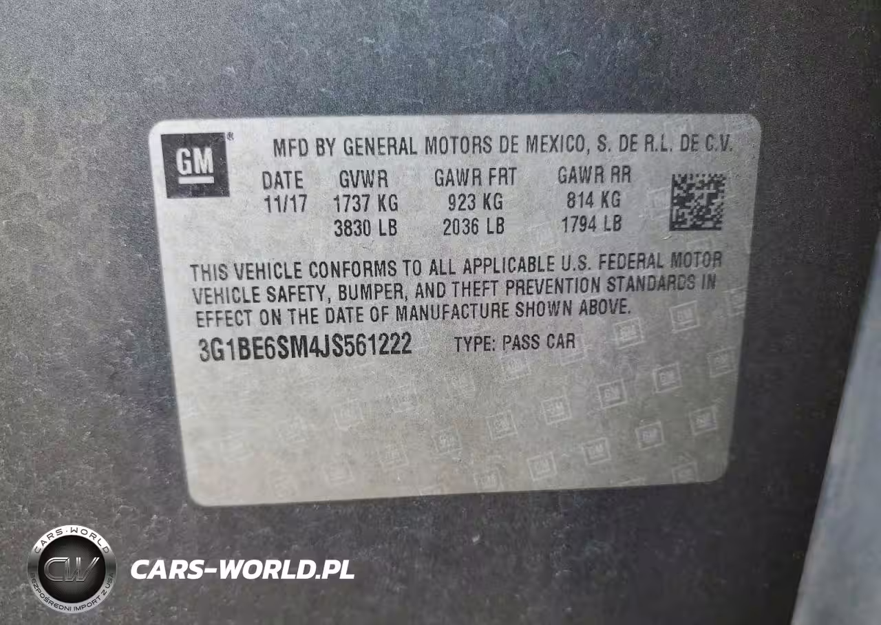 Copart Nr: C-52832635 VIN: 3G1BE6SM4JS561222 Port: Los Angeles, CA
