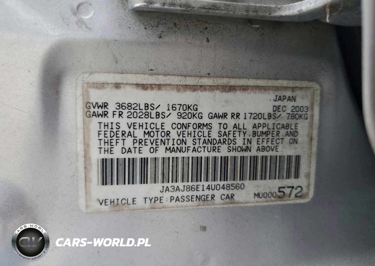 Copart Nr: C-53683945 VIN: JA3AJ86E14U048560 Port: Savannah, GA