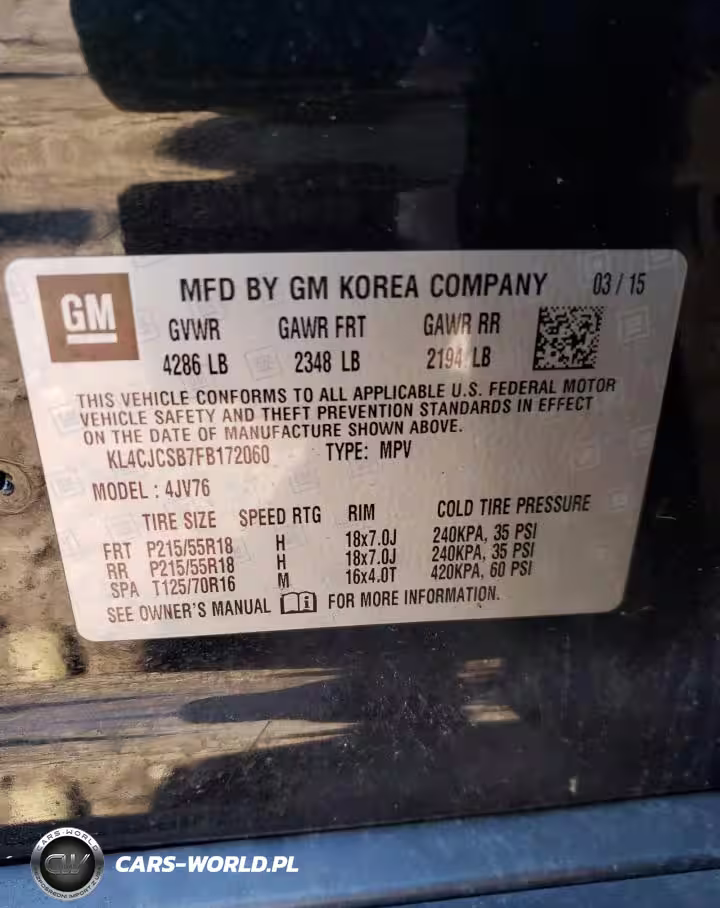 Copart Nr: C-53851962 VIN: KL4CJCSB7FB172060 Port: Indianapolis, IN