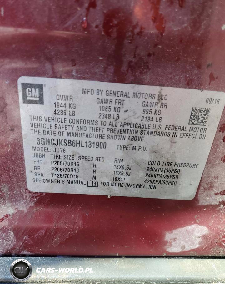 Copart Nr: C-56973485 VIN: 3GNCJKSB6HL131900 Port: Savannah, GA