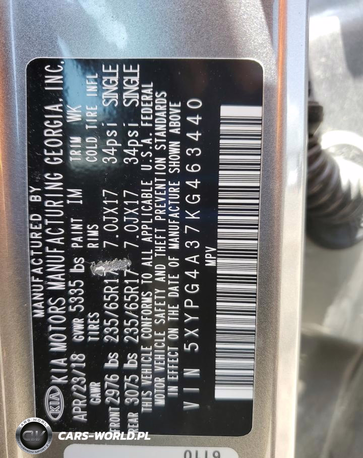 Copart Nr: C-57872815 VIN: 5XYPG4A37KG463440 Port: Savannah, GA