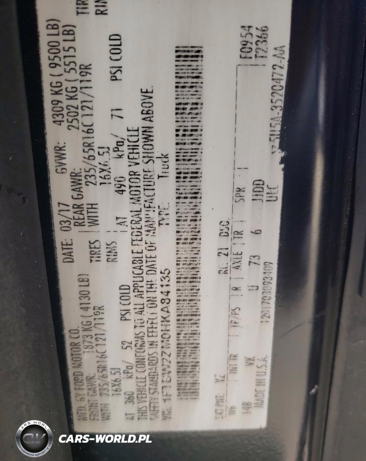 Copart Nr: C-59282834 VIN: 1FTBW2ZM0HKA84135 Port: Elizabeth, NJ