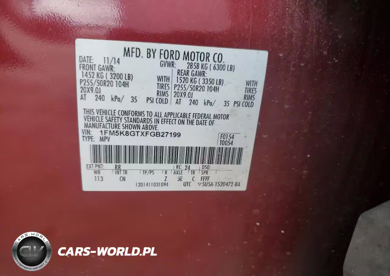 Copart Nr: C-62403365 VIN: 1FM5K8GTXFGB27199 Port: Savannah, GA