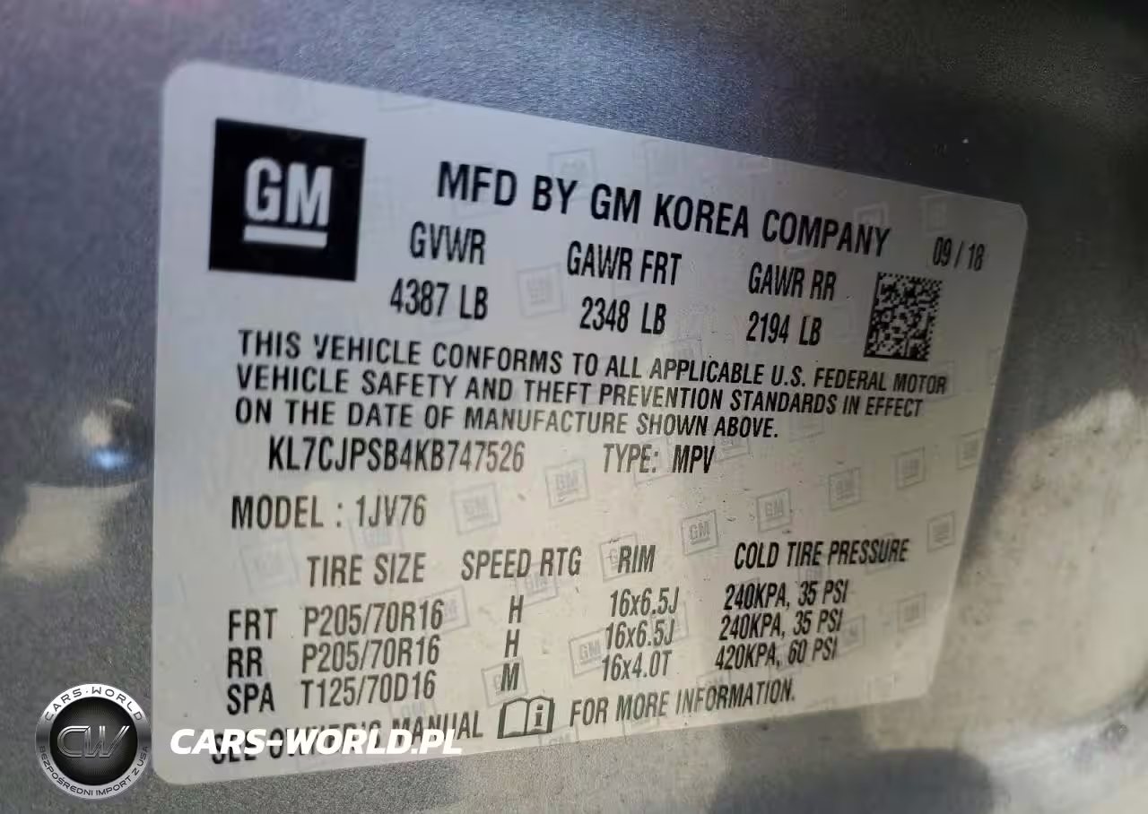 Copart Nr: C-62486144 VIN: KL7CJPSB4KB747526 Port: Indianapolis, IN