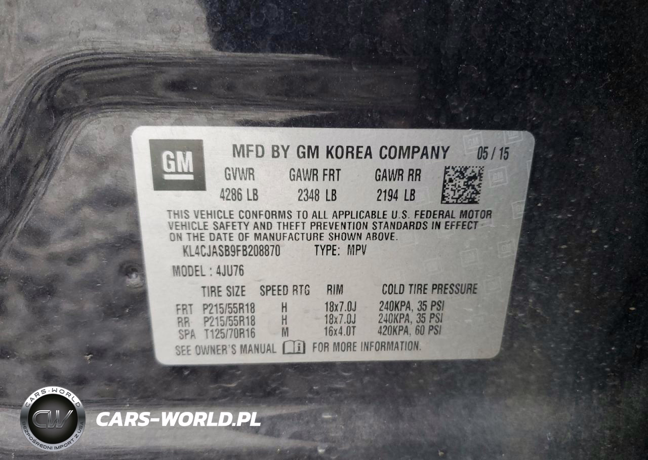 Copart Nr: C-62641735 VIN: KL4CJASB9FB208870 Port: Savannah, GA