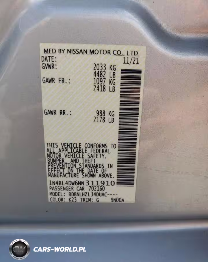 Copart Nr: C-62877275 VIN: 1N4BL4DW6NN311910 Port: Indianapolis, IN