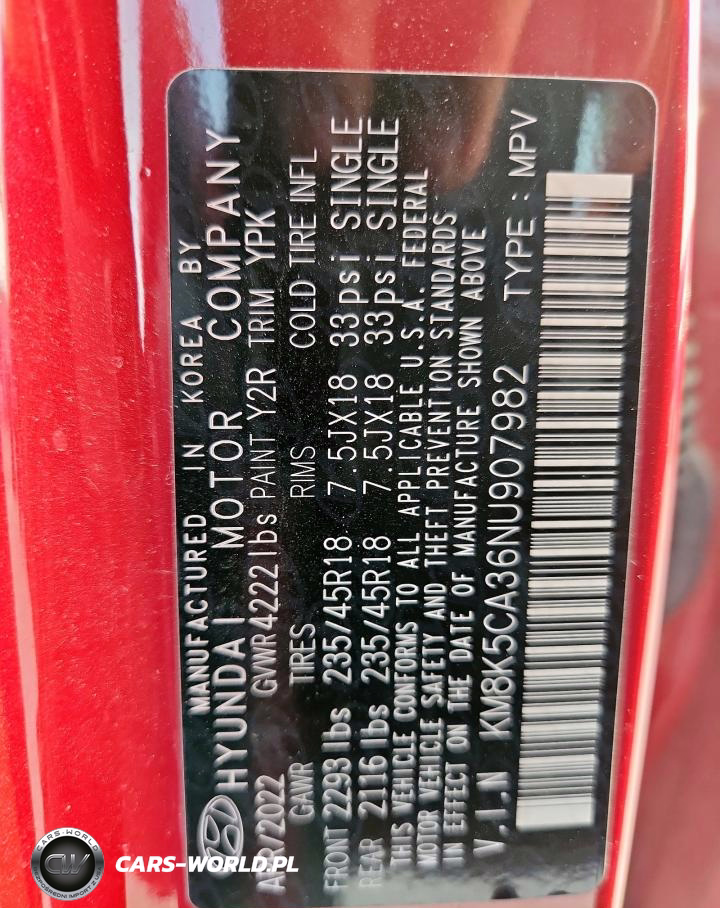 Copart Nr: C-63412225 VIN: KM8K5CA36NU907982 Port: Houston, TX