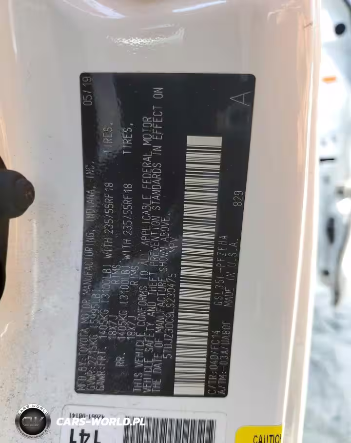 Copart Nr: C-66132175 VIN: 5TDJZ3DC9LS230475 Port: Elizabeth, NJ