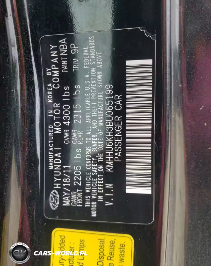 Copart Nr: C-67166725 VIN: KMHHU6KH3BU065199 Port: Elizabeth, NJ