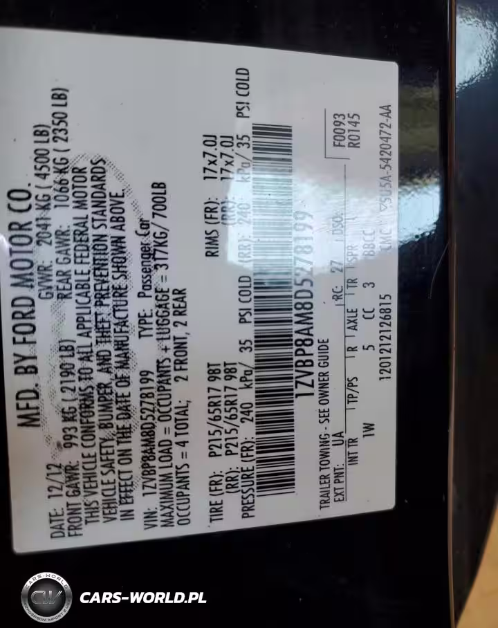 Copart Nr: C-68176265 VIN: 1ZVBP8AM8D5278199 Port: Elizabeth, NJ