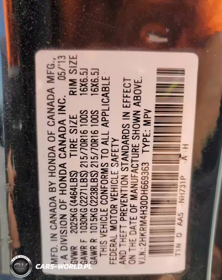 Copart Nr: C-70175775 VIN: 2HKRM4H30DH669363 Port: Houston, TX