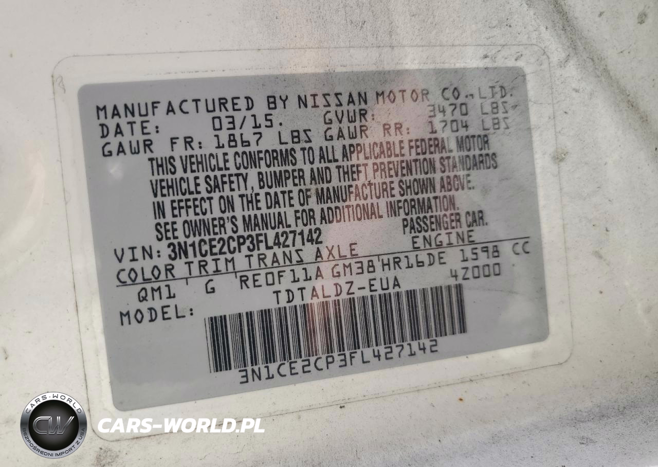 Copart Nr: C-70985835 VIN: 3N1CE2CP3FL427142 Port: Elizabeth, NJ