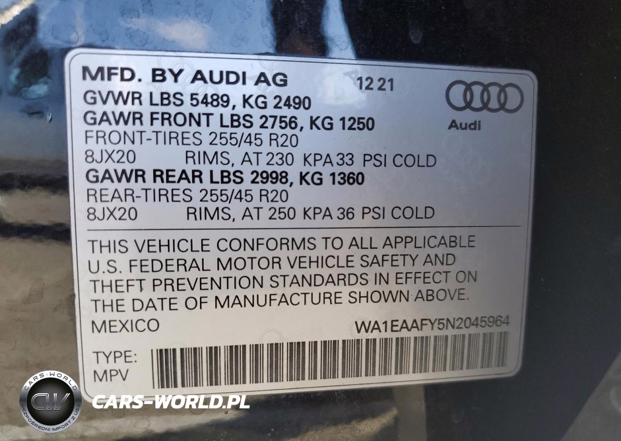 Copart Nr: C-71728595 VIN: WA1EAAFY5N2045964 Port: Los Angeles, CA