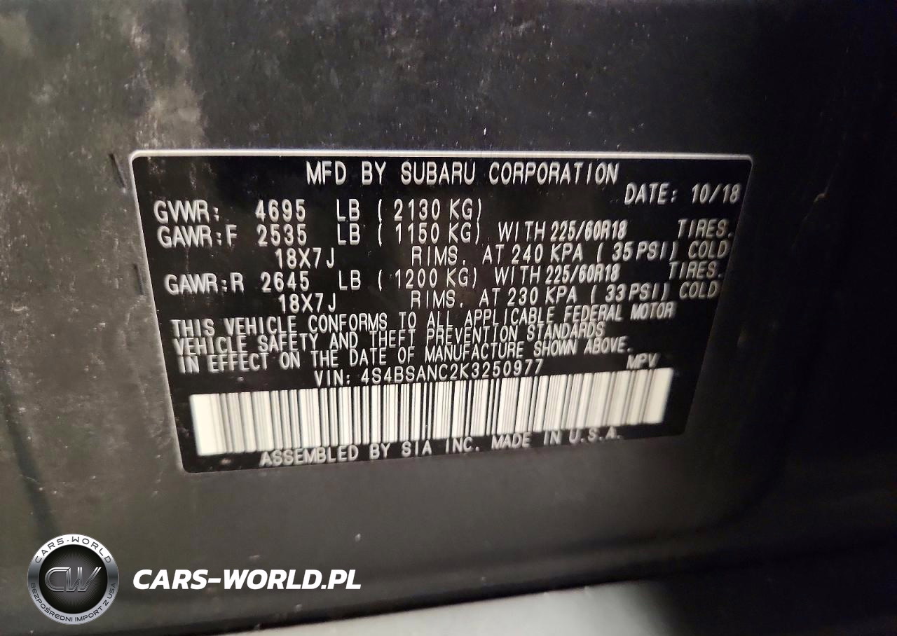 Copart Nr: C-72183385 VIN: 4S4BSANC2K3250977 Port: Indianapolis, IN