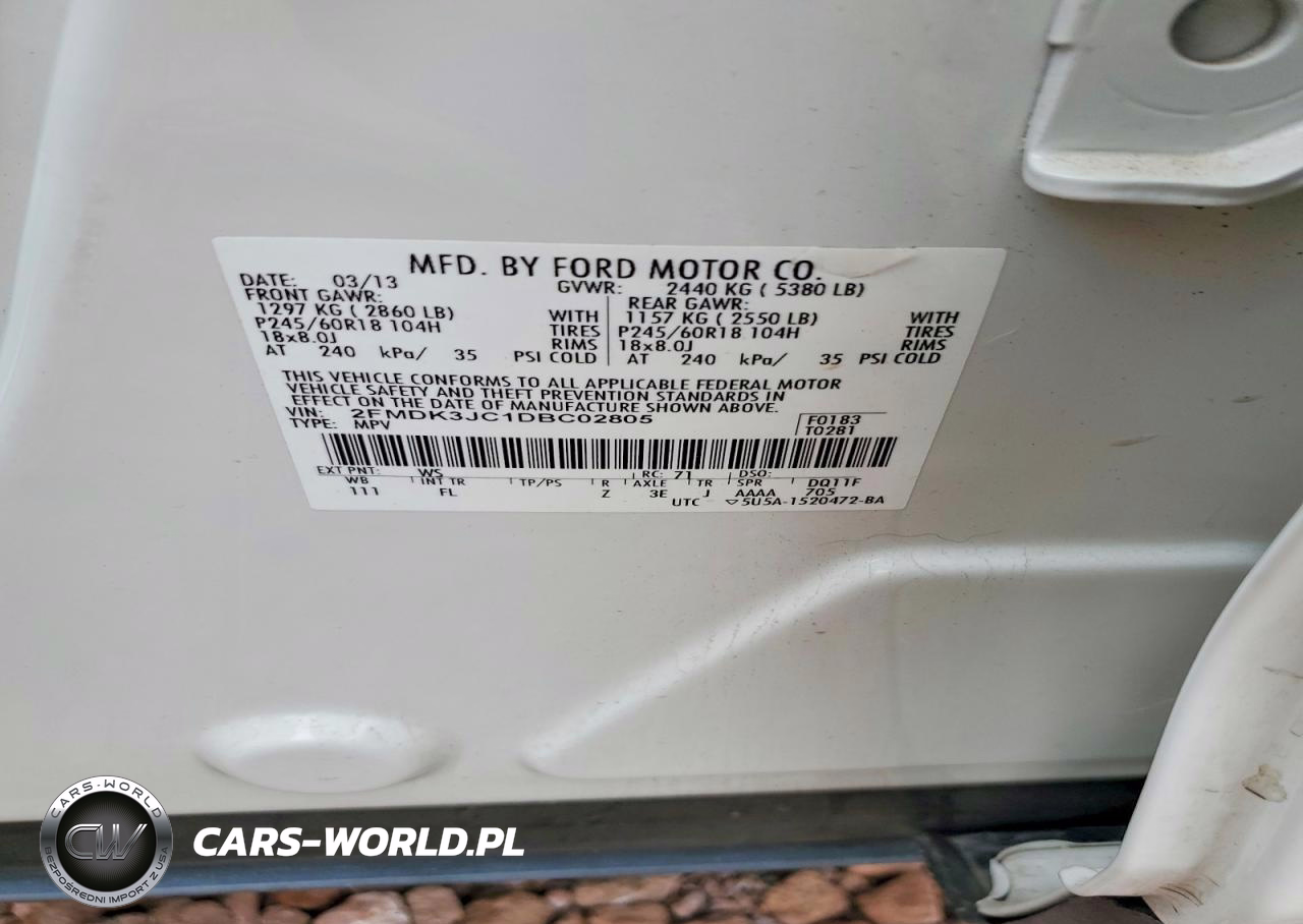 Copart Nr: C-72198425 VIN: 2FMDK3JC1DBC02805 Port: Los Angeles, CA
