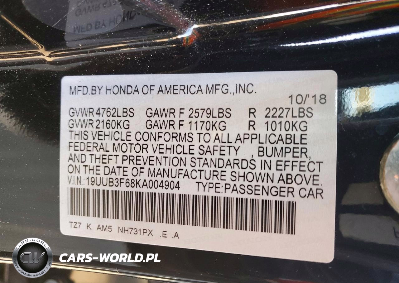 Copart Nr: C-72315485 VIN: 19UUB3F68KA004904 Port: Elizabeth, NJ