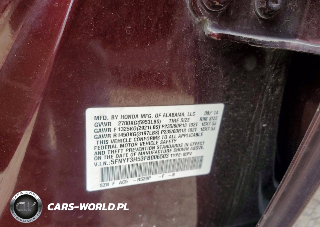 Copart Nr: C-72483935 VIN: 5FNYF3H53FB006503 Port: Houston, TX