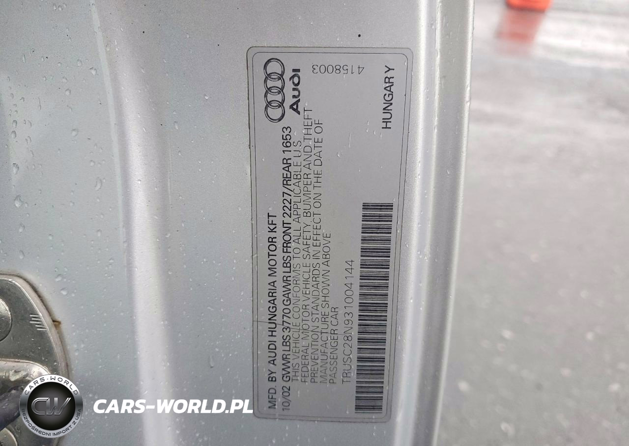 Copart Nr: C-72532475 VIN: TRUSC28N931004144 Port: Elizabeth, NJ