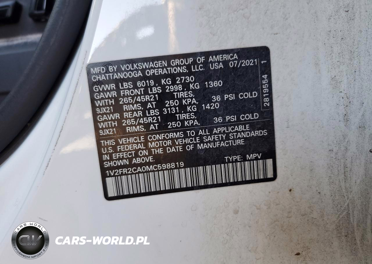 Copart Nr: C-72557184 VIN: 1V2FR2CA0MC598819 Port: Houston, TX