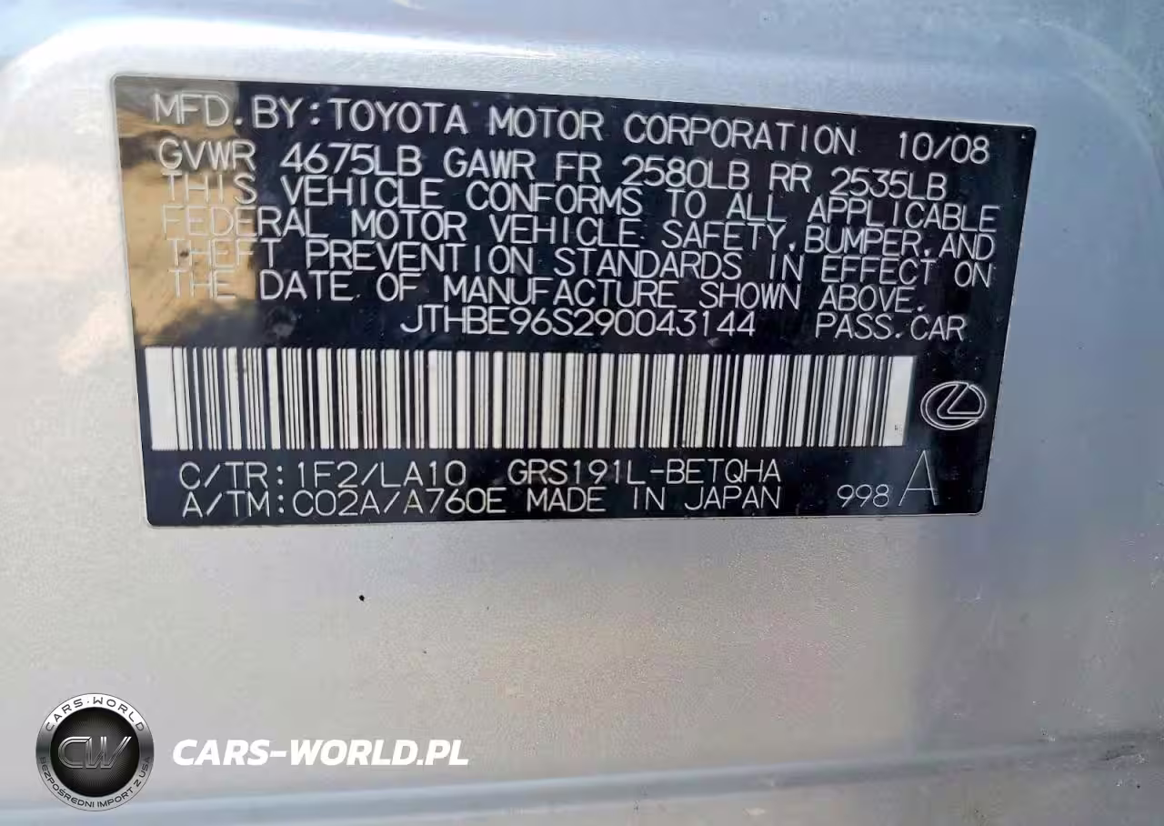 Copart Nr: C-72623225 VIN: JTHBE96S290043144 Port: Savannah, GA