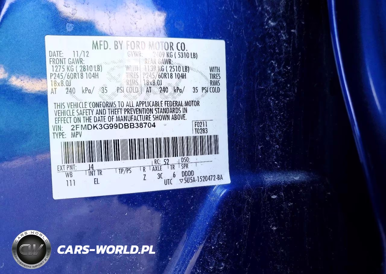 Copart Nr: C-72671405 VIN: 2FMDK3G99DBB38704 Port: Indianapolis, IN