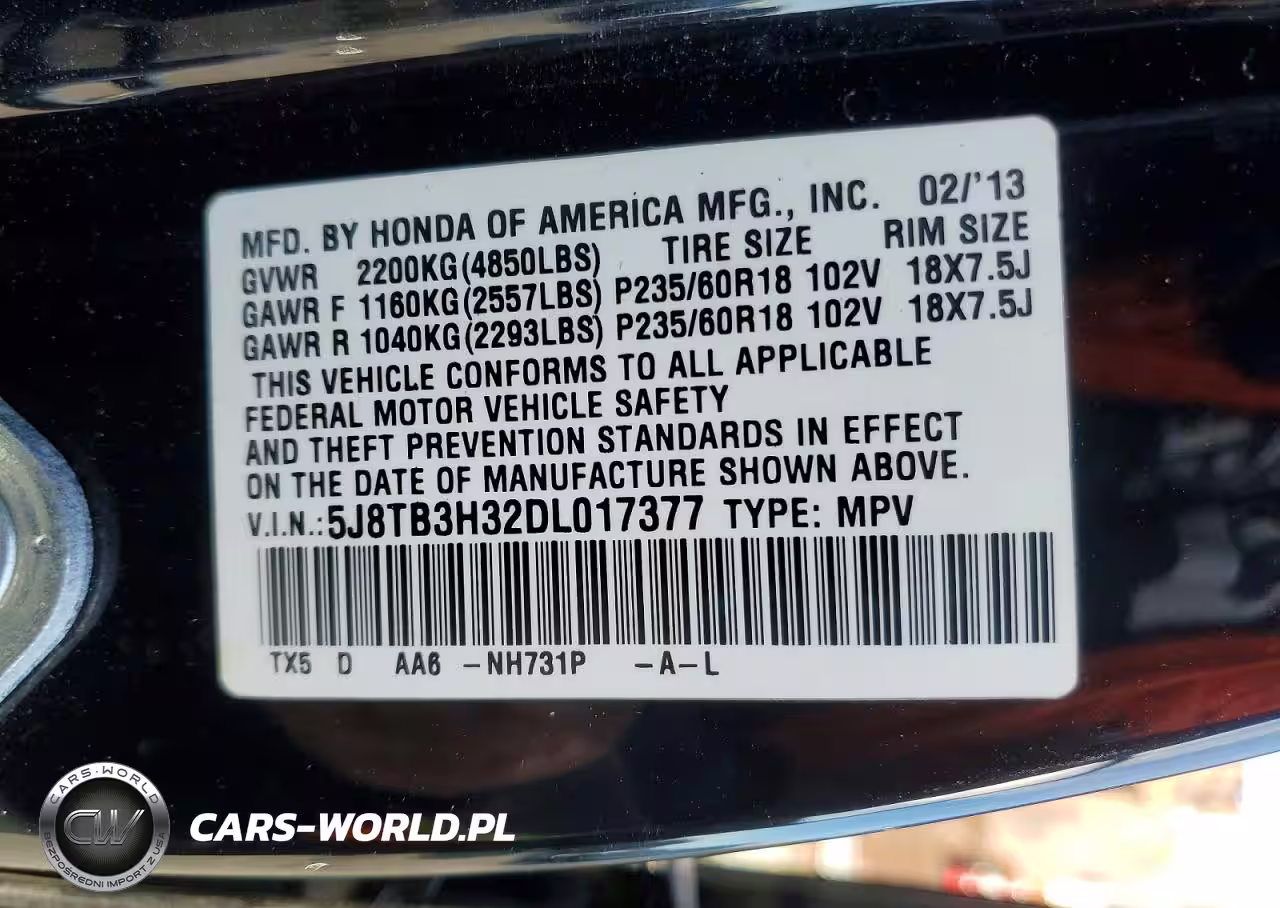 Copart Nr: C-72672385 VIN: 5J8TB3H32DL017377 Port: Los Angeles, CA