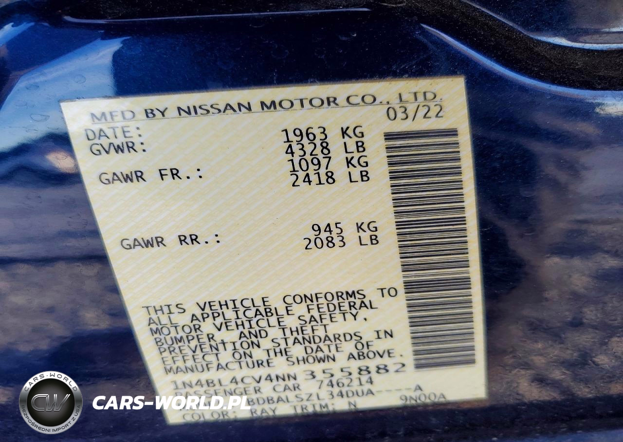 Copart Nr: C-72681205 VIN: 1N4BL4CV4NN355882 Port: Savannah, GA
