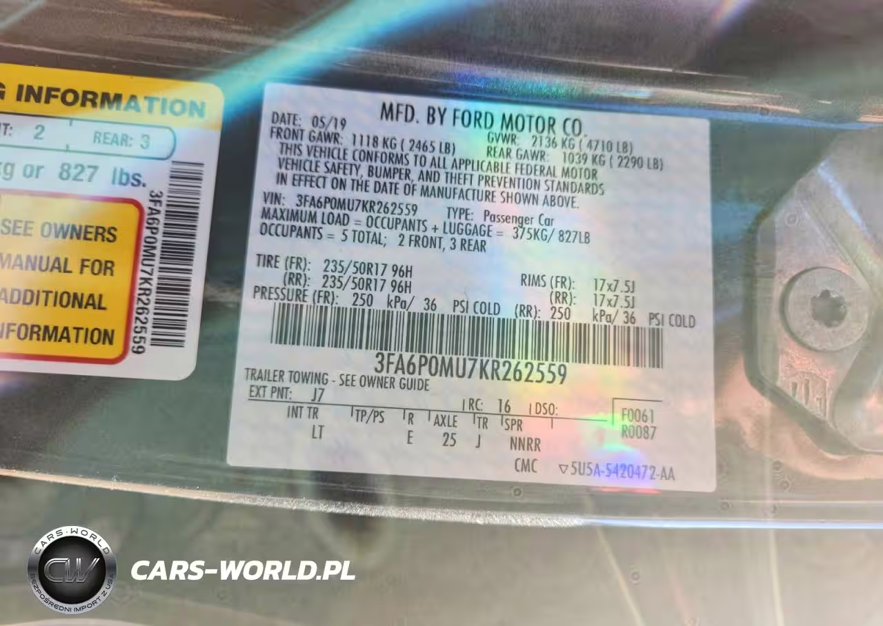 Copart Nr: C-72700225 VIN: 3FA6P0MU7KR262559 Port: Houston, TX