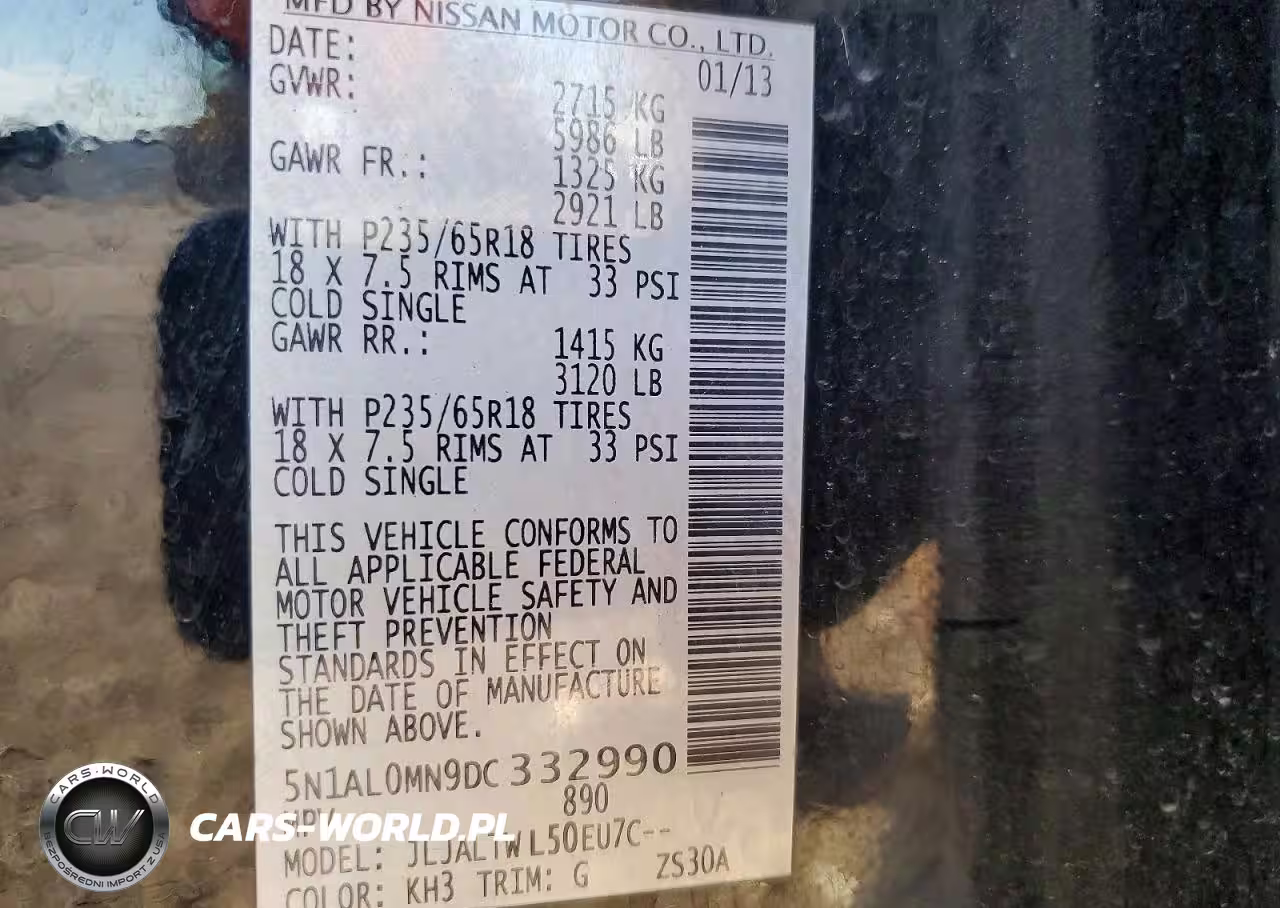 Copart Nr: C-72803295 VIN: 5N1AL0MN9DC332990 Port: Houston, TX