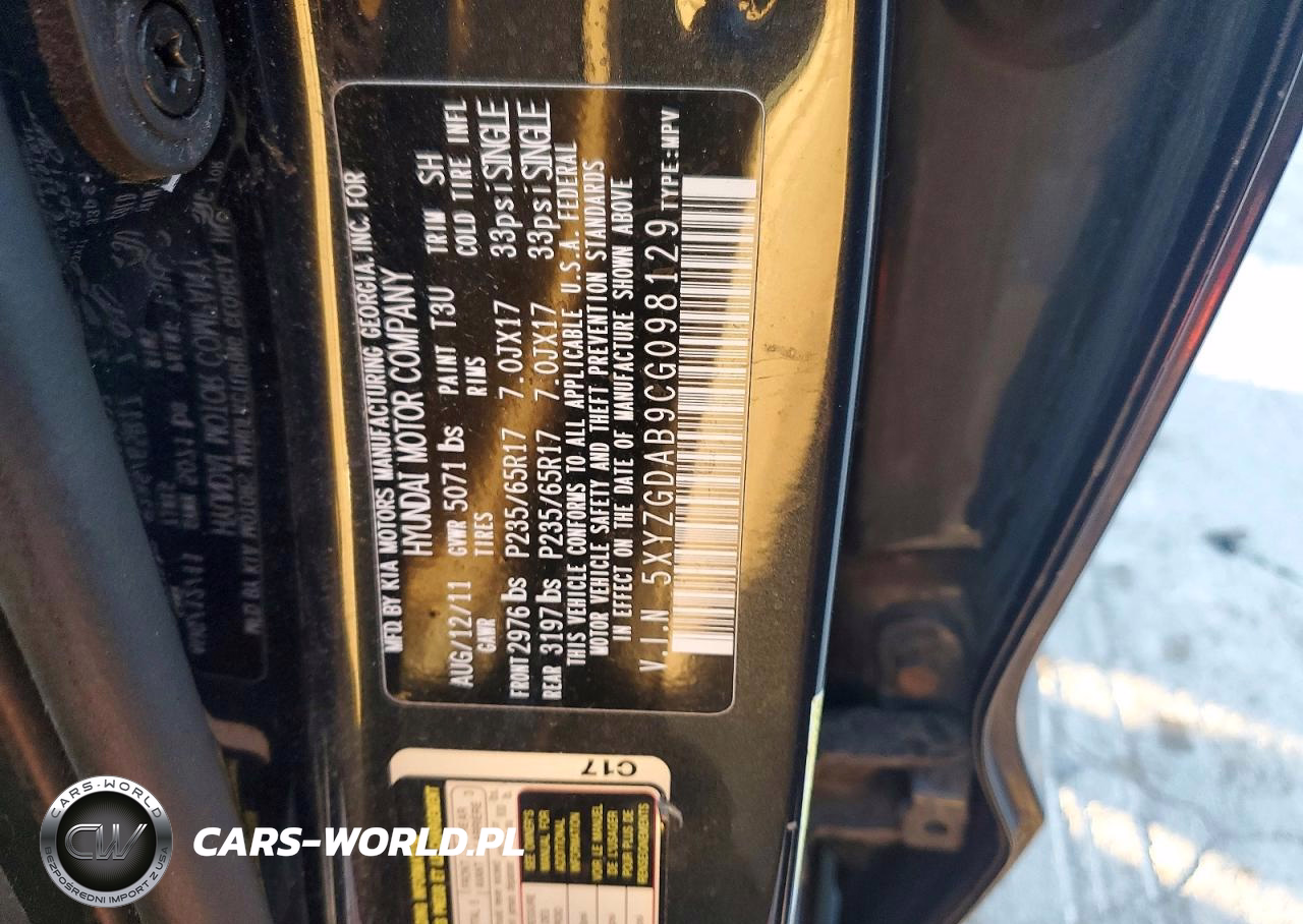 Copart Nr: C-72915935 VIN: 5XYZGDAB9CG098129 Port: Savannah, GA