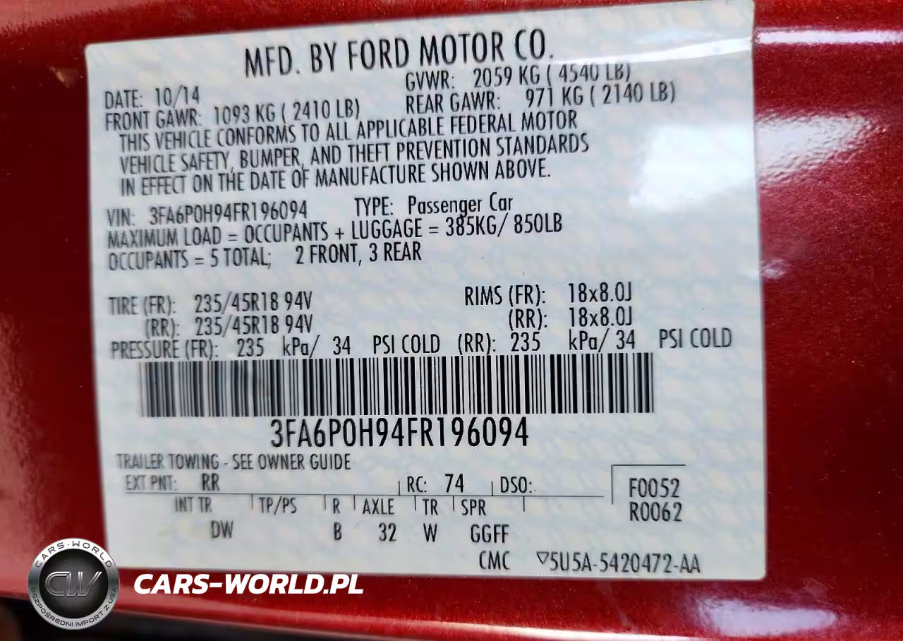Copart Nr: C-73020855 VIN: 3FA6P0H94FR196094 Port: Los Angeles, CA