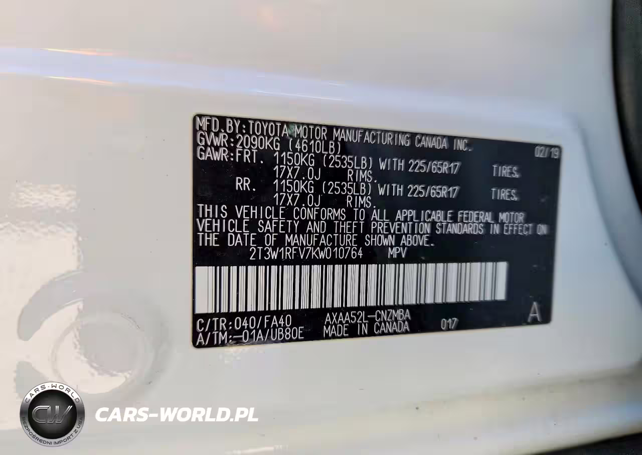 Copart Nr: C-73107535 VIN: 2T3W1RFV7KW010764 Port: Houston, TX