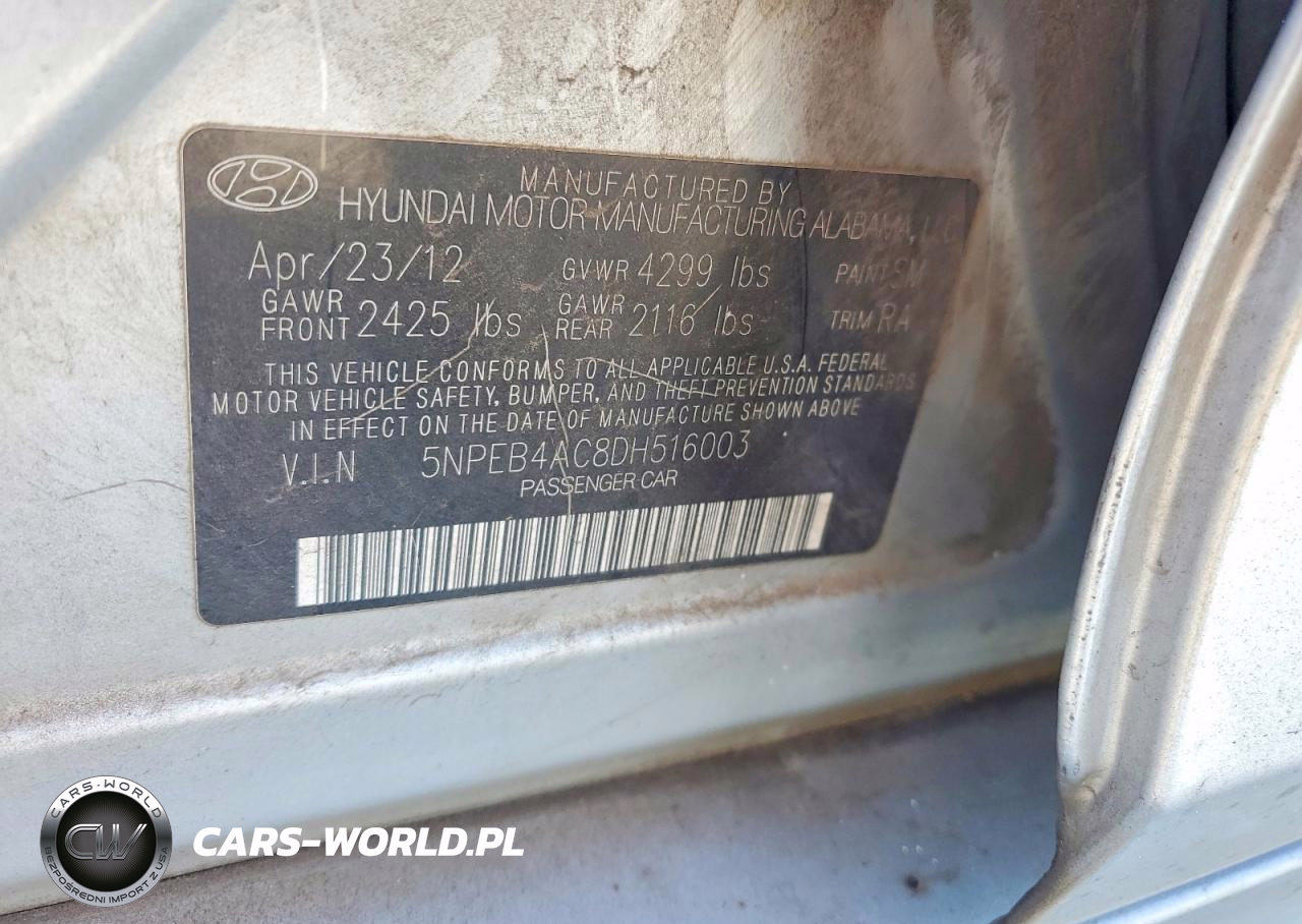 Copart Nr: C-73172005 VIN: 5NPEB4AC8DH516003 Port: Savannah, GA