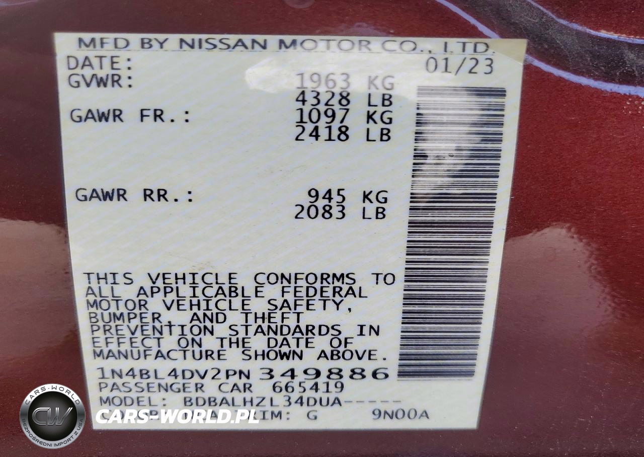 Copart Nr: C-73237635 VIN: 1N4BL4DV2PN349886 Port: Savannah, GA