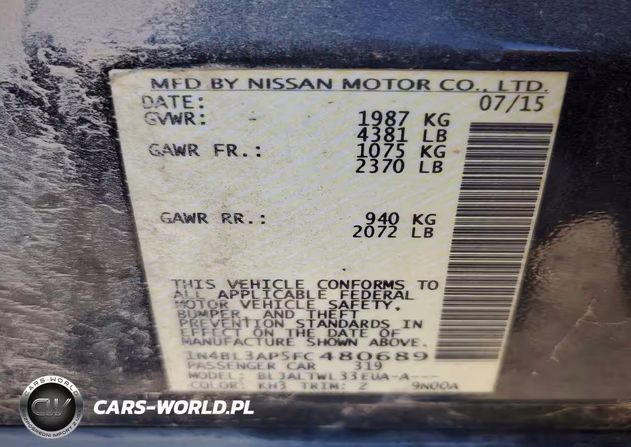 Copart Nr: C-73425435 VIN: 1N4BL3AP5FC480689 Port: Indianapolis, IN
