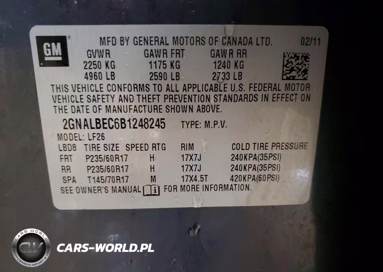 Copart Nr: C-73469025 VIN: 2GNALBEC6B1248245 Port: Indianapolis, IN