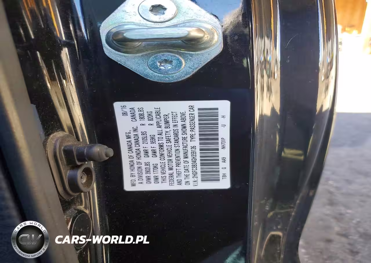 Copart Nr: C-73470945 VIN: 2HGFC3B34GH359126 Port: Houston, TX