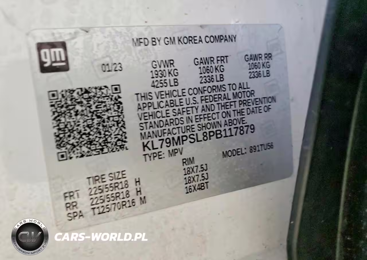 Copart Nr: C-73489065 VIN: KL79MPSL8PB117879 Port: Indianapolis, IN