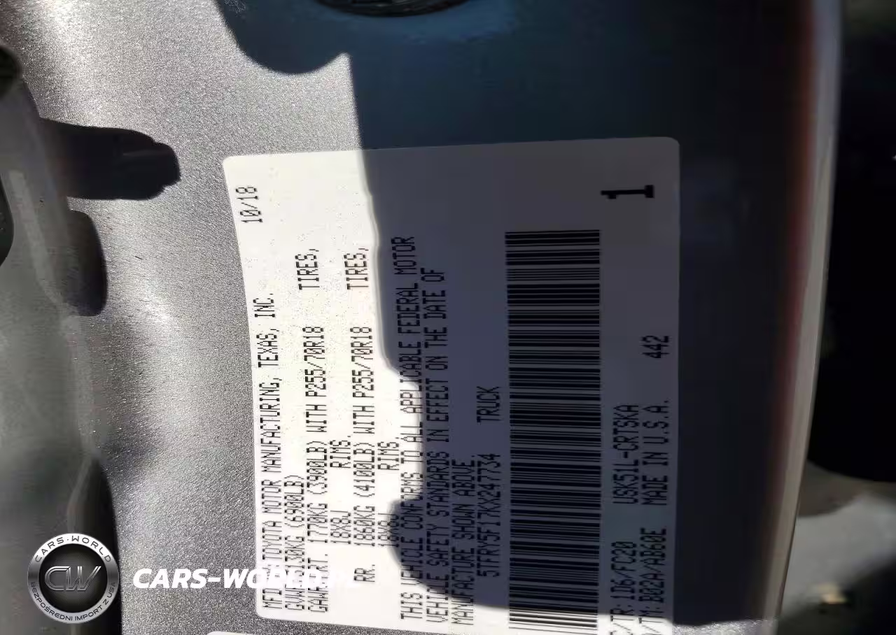 Copart Nr: C-73526825 VIN: 5TFRY5F17KX247734 Port: Savannah, GA