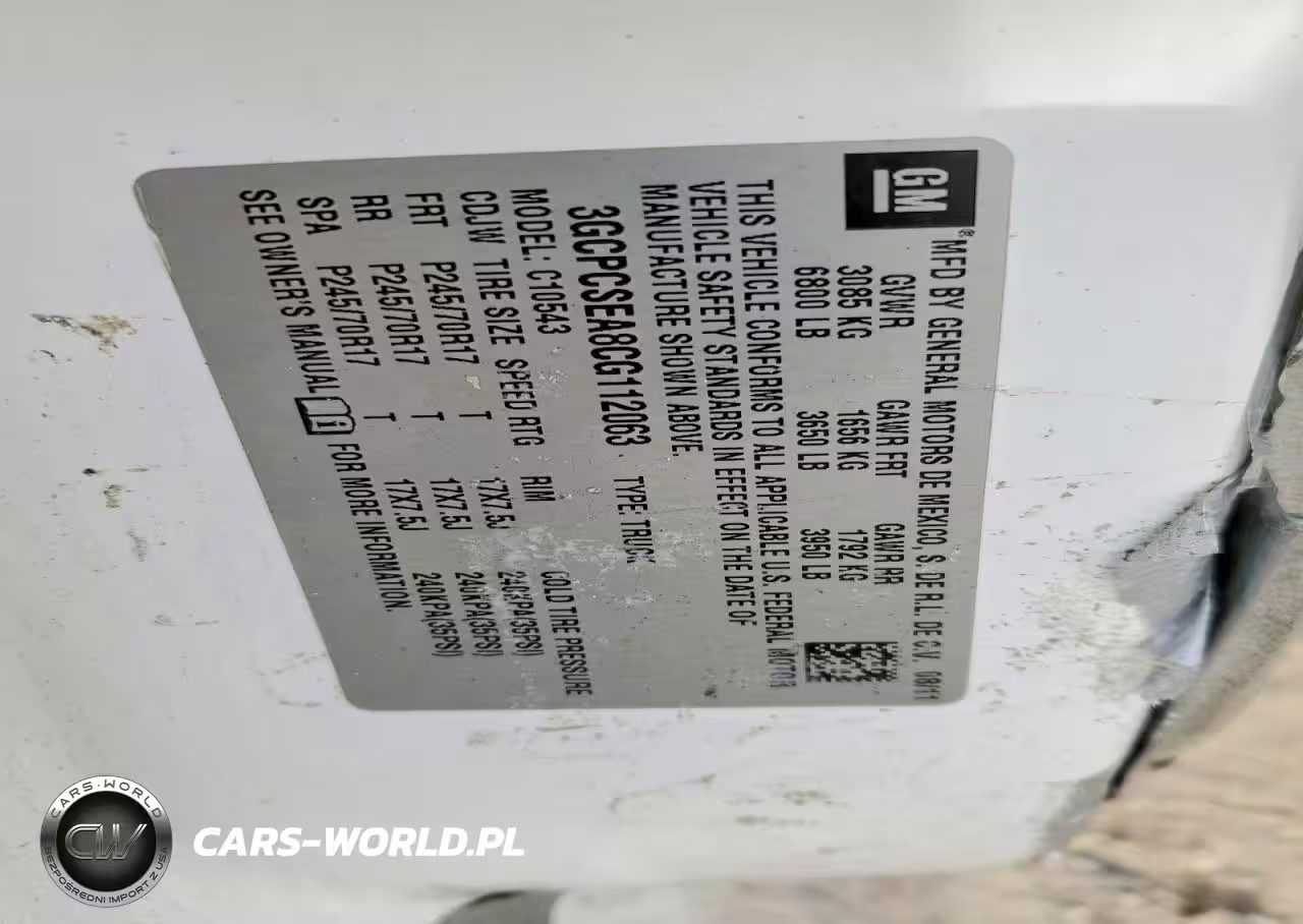 Copart Nr: C-73667795 VIN: 3GCPCSEA8CG112063 Port: Houston, TX