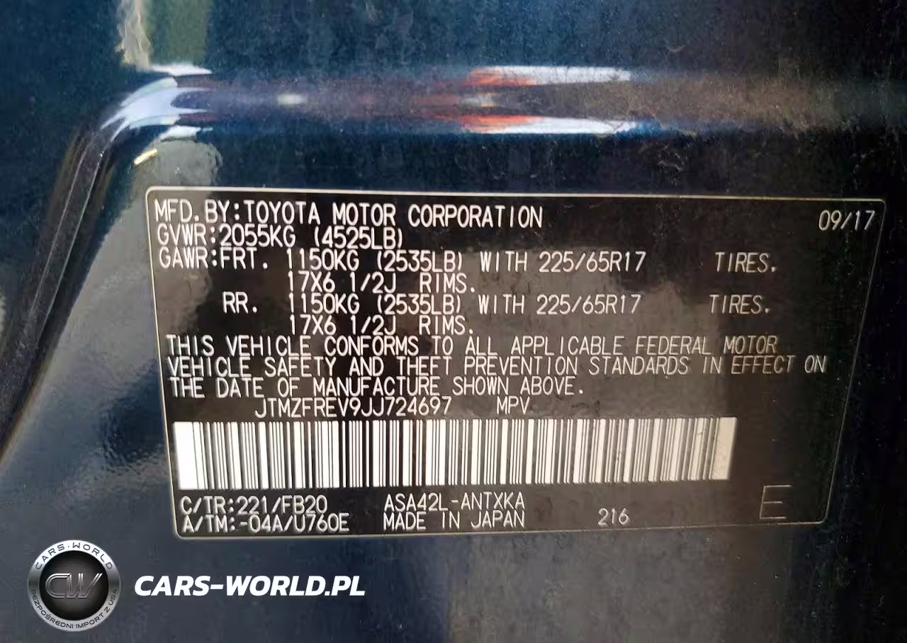 Copart Nr: C-73672625 VIN: JTMZFREV9JJ724697 Port: Los Angeles, CA