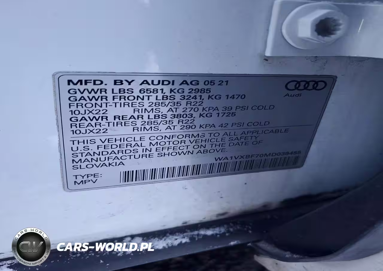 Copart Nr: C-73718375 VIN: WA1VXBF70MD039455 Port: Houston, TX