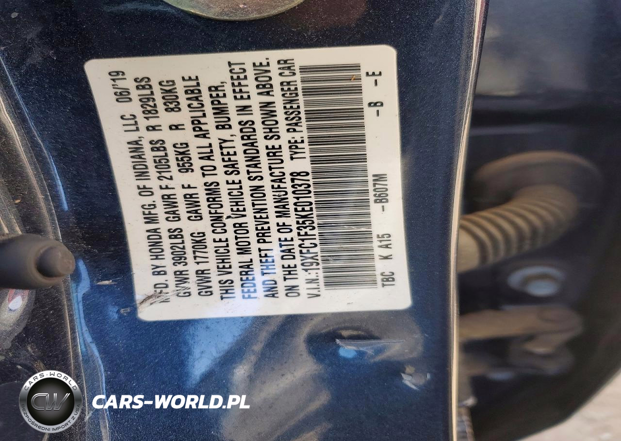 Copart Nr: C-73721535 VIN: 19XFC1F35KE010378 Port: Houston, TX